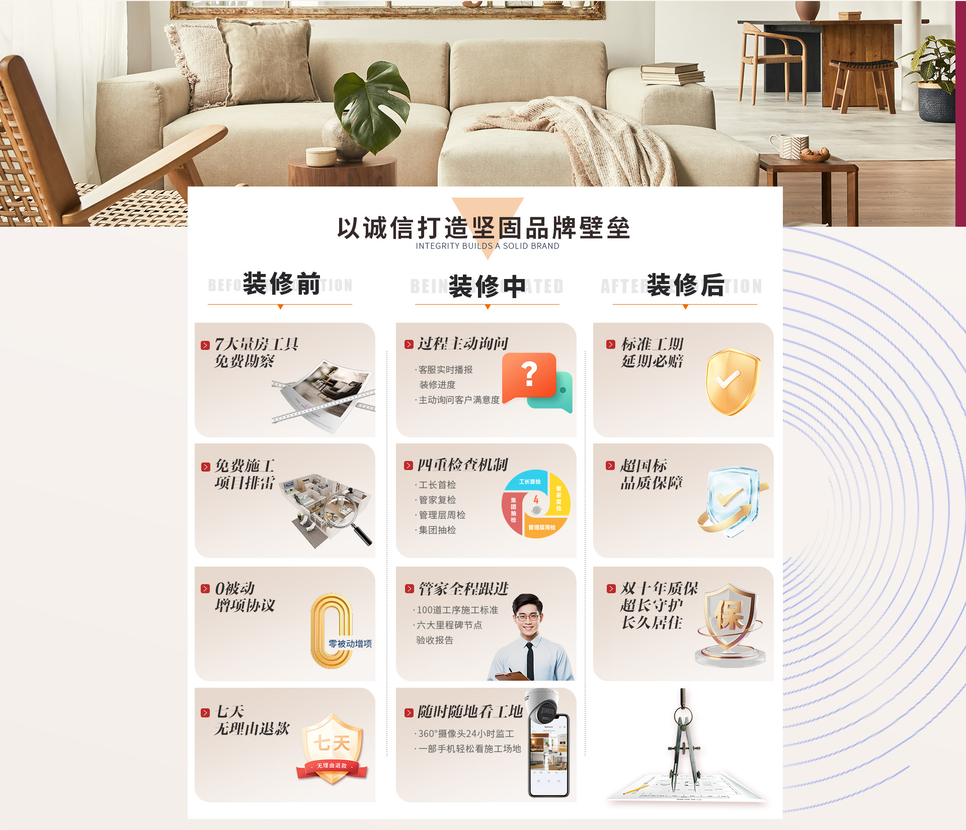 免费可享:预约体验 / 装修报价 / 上门量房 / 设计师1对1方案讲解