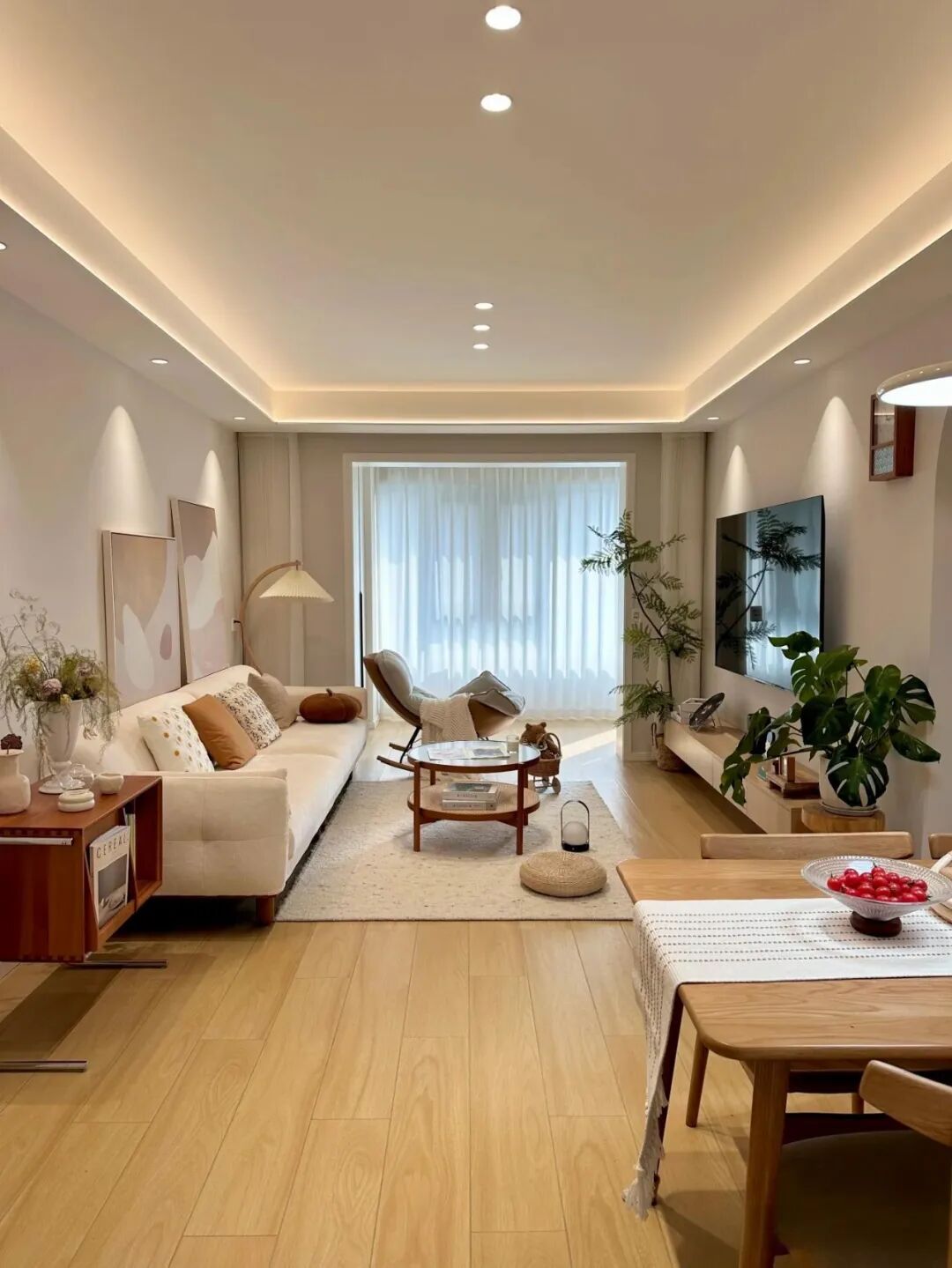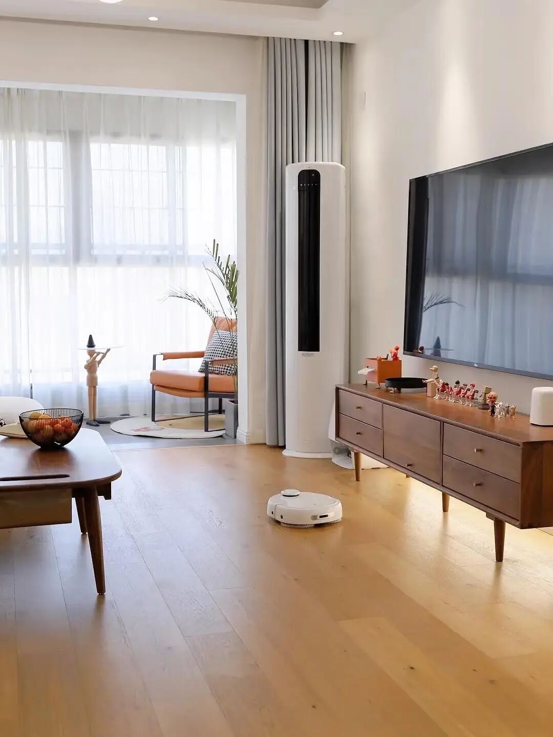 家具选细腿的,悬浮柜、细腿沙发、高脚茶几能露出更多地面,增加光线反射面积,视觉上也更显轻盈通透。避免笨重的落地式家具。