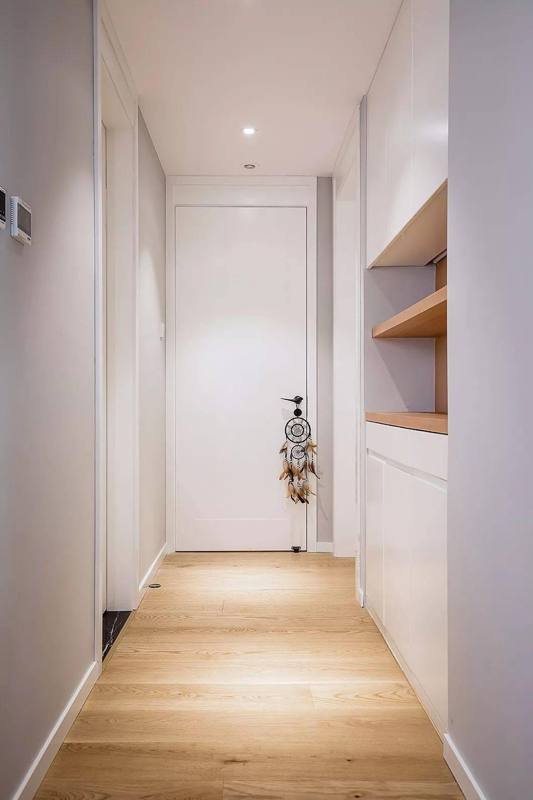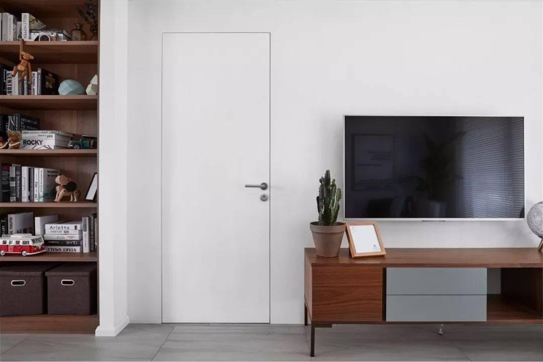 一般来说,我个人不推荐选择白色的房门,因为时间久了白色容易发黄,因此对于年轻人的简约现代风格来说,木色的平板门就显得格外的和谐美观了。