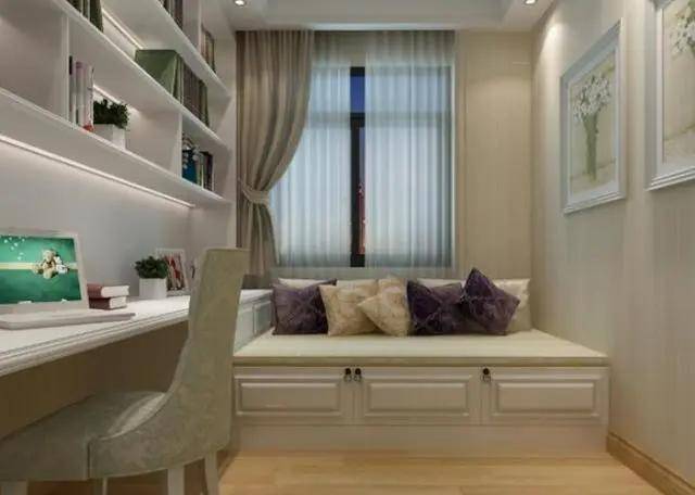 在窗台打一组合适高度的柜子,放上坐垫立马变成了飘窗。既能够拥有舒适的休闲区,又增加了收纳。