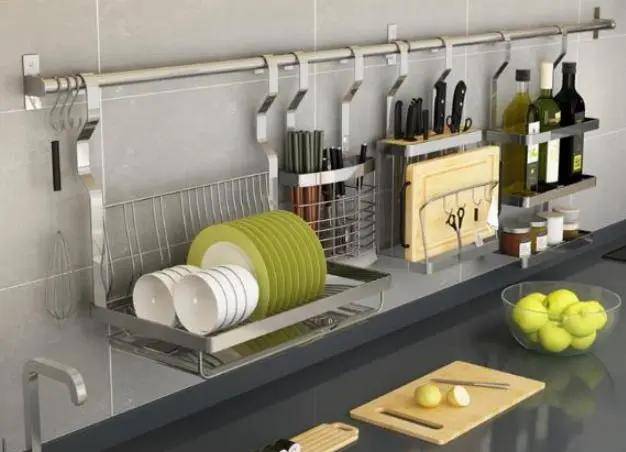 厨房之中必不可少的收纳架,合理利用墙面空间大家都知道,但是记得高度要方便拿取,且最好选择同一种颜色和材质,才不会让厨房看起来眼花缭乱。