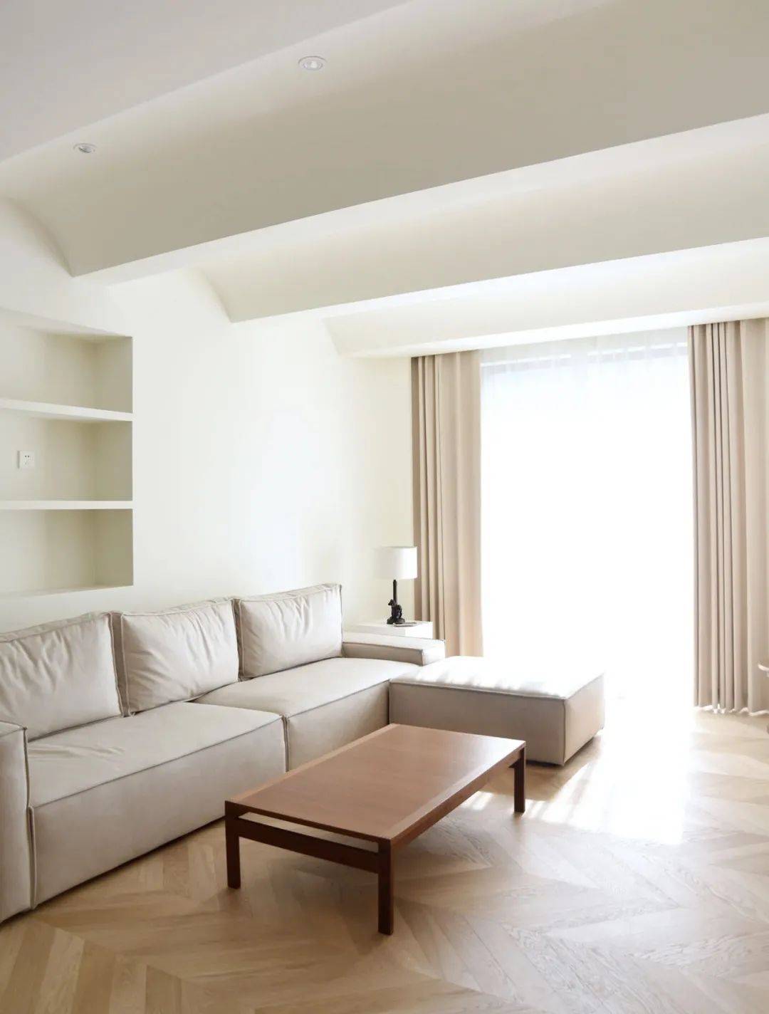 如果是就会看着更规整。如果嫌有直角,还可以用弧角,进一步降低梁的存在感,增加造型感。