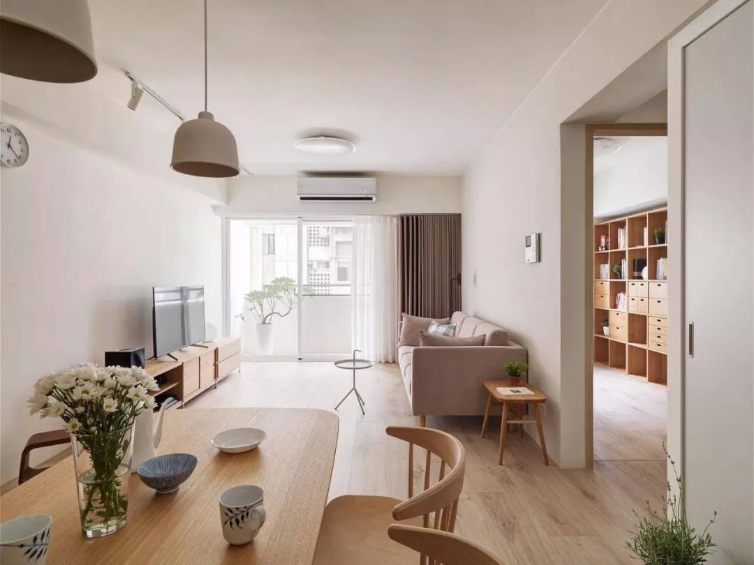 如果是客厅面积偏小,采光度比较差的户型,还可以利用木制地板打造出空间增大的视觉效果。