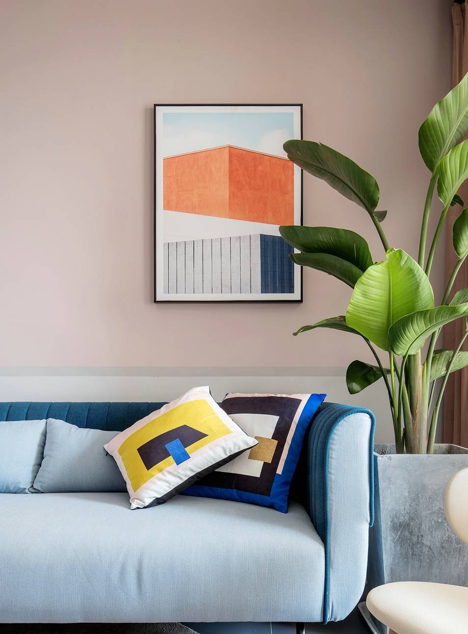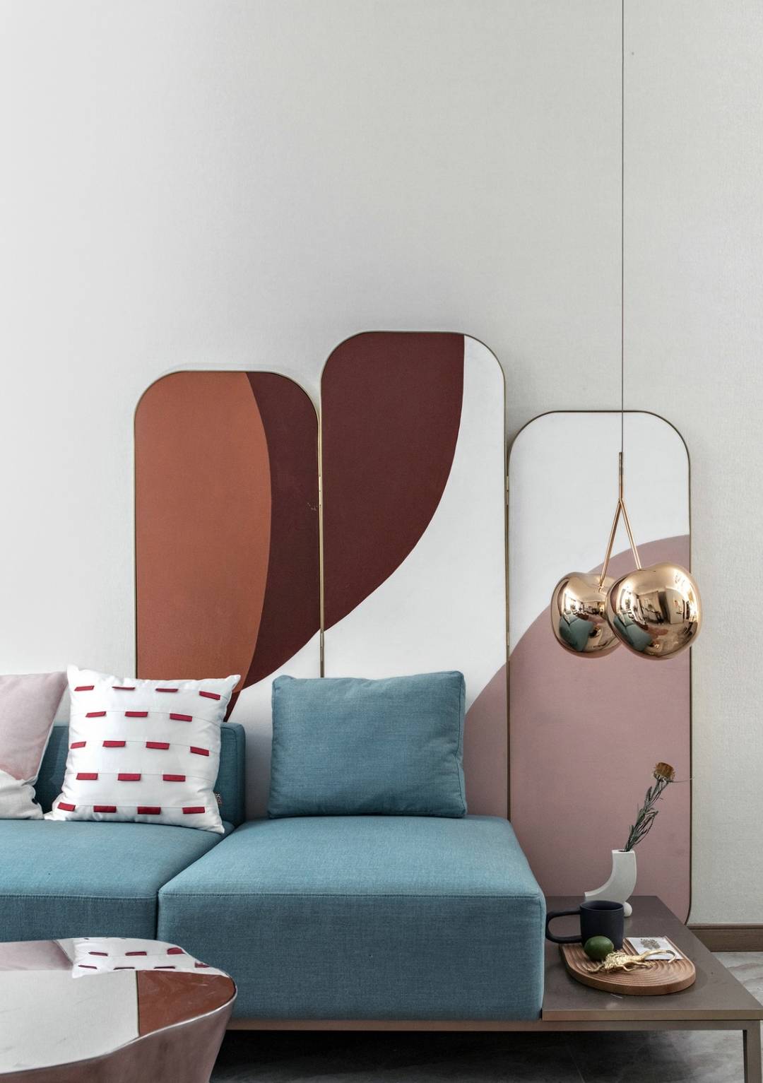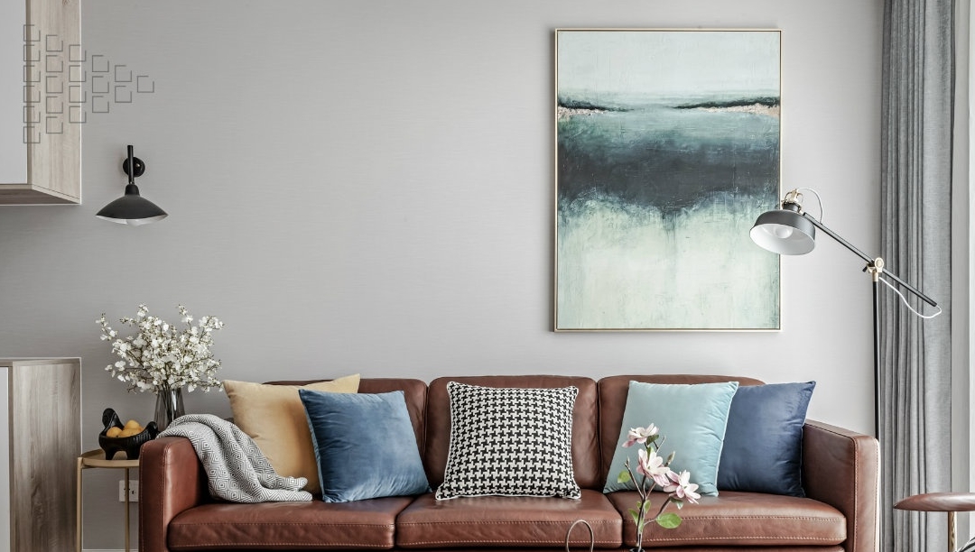 在沙发背景墙上挂装饰画是最常见的方式。优点主要有三个:一成本低;二时间快;三容易更换。装饰画又分为单个的和组合式的,无论选哪种,都一定要记得与整个家装风格相搭。