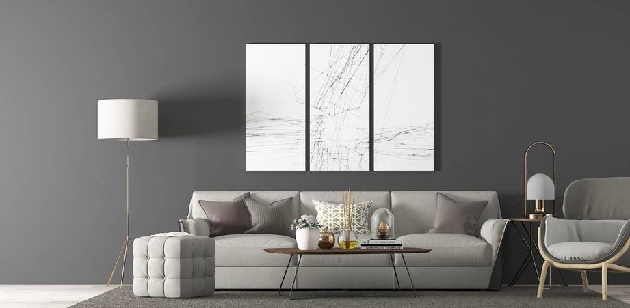黑白灰的搭配让客厅看起来既现代又干练,墙面不同的色块区分出了功能区域。空间的装修材料与形式虽然并不突出,但是通过色彩的协调与空间表面质感效果的营造,让客厅拥有了十分精致的感觉。