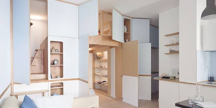 小户型多功能装修,全屋打柜,将室内的空间非常好的使用了起来,既美观又非常实用,造造觉得非常值得借鉴学习。从这个角度刚好能够看到室内的布局,全屋的柜子根据户型量身打造,能够轻松收纳各种小件物品。
