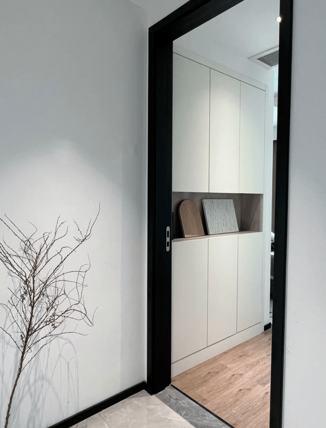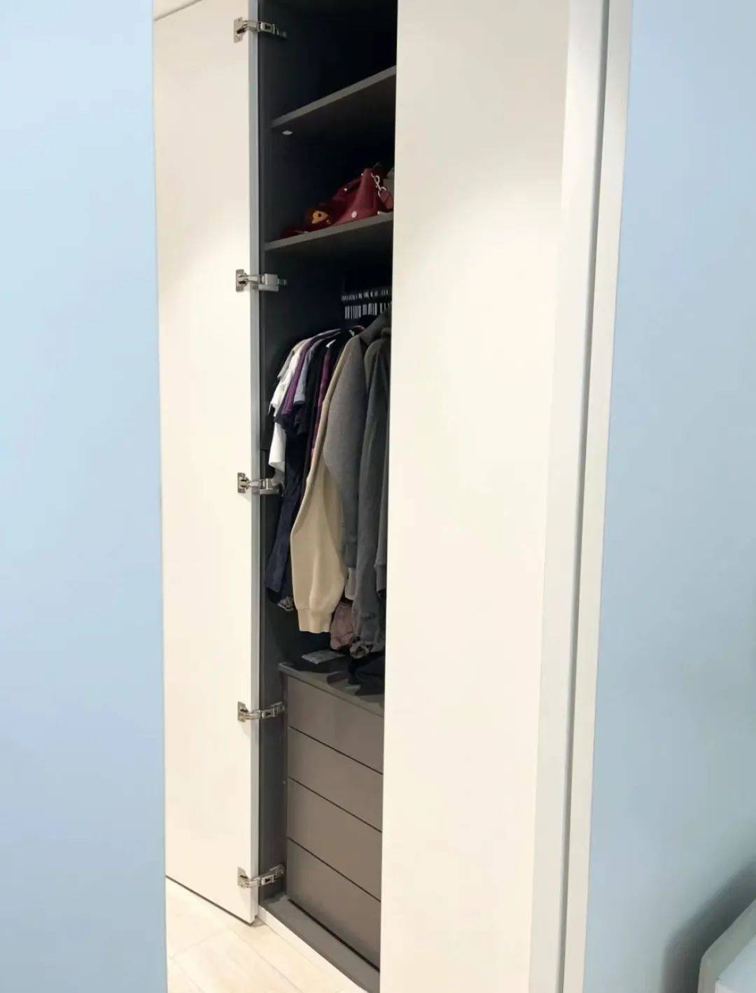 砸墙改变卧室布局,重新砌墙做了。衣帽间的移门没有地轨,清理起来很方便。