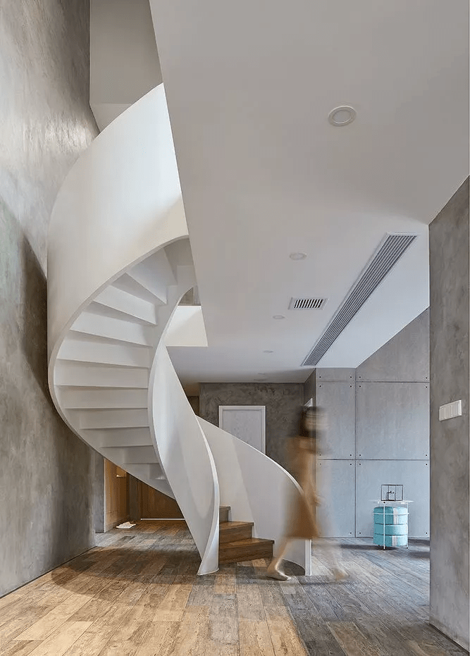 旋转楼梯造型美观、优雅。其设计造型也非常有设计感,外观上绝对是让人眼前一亮,可通过不同颜色,营造空间不同质感,深得年轻人喜爱。
