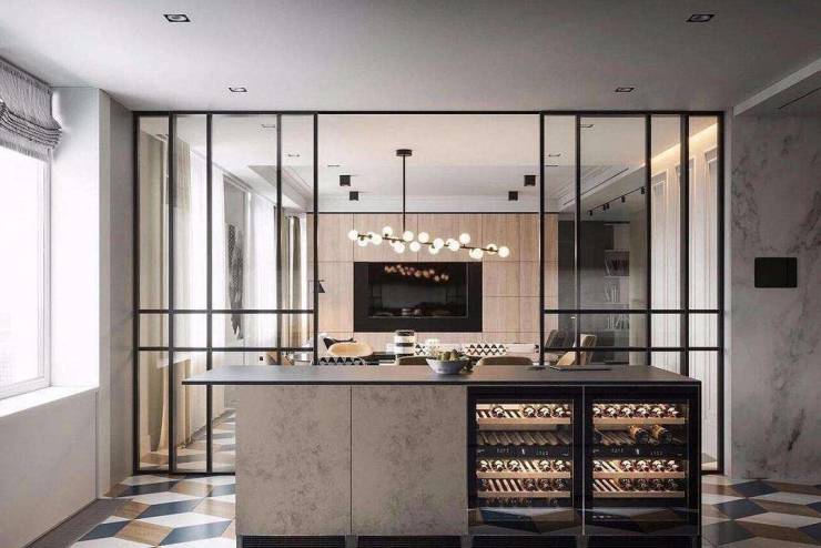 玻璃门兼具开放空间与间隔的双重功能,视觉穿透性有放大空间的效果。玻璃材质分为夹白膜胶、夹砂、加银丝、烤漆等。夹白膜胶玻璃不透光,且胶合作用让玻璃即使破裂也不至于溅出碎片,较为安全。夹纱玻璃造型千变万化,使空间有个性化效果。