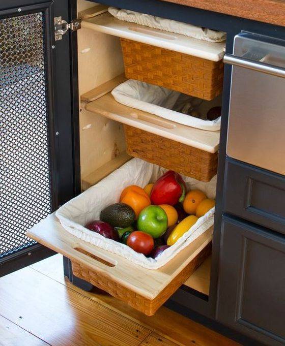 当然了要想更好的存放瓜果,也可以装这种通风性比较好的篮子,柜门也不用装了,划算了不少。