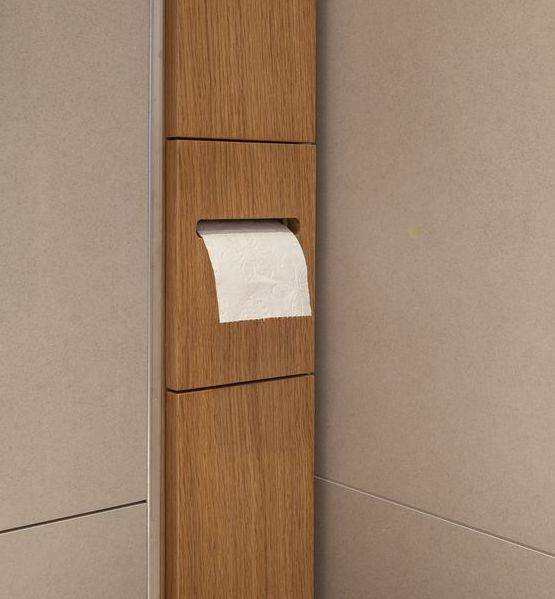马桶后面做成收纳柜,在柜门上专门留下一个小洞,正好能用来存放纸巾。马桶区域变得更加美观的同时,日常抽纸使用,也能更加的方便。