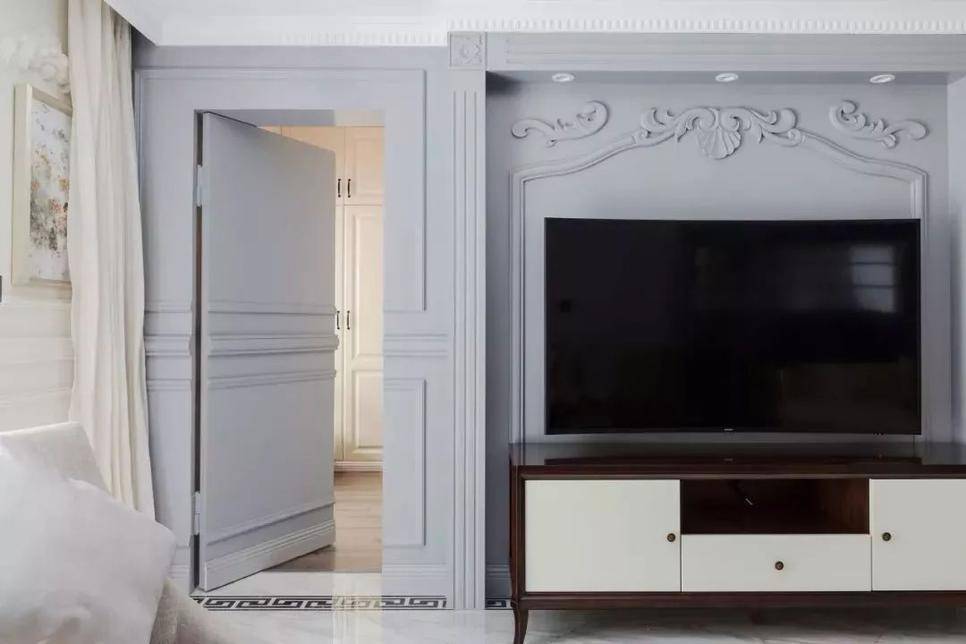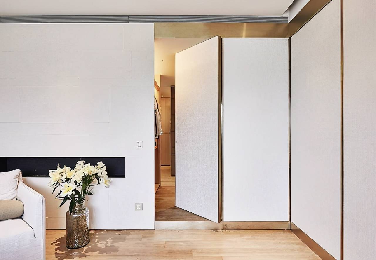 隐形门真的可以迷惑人们的眼睛,设计师一般会将隐形门和背景墙融为一体,营造出一体化的视觉效果。