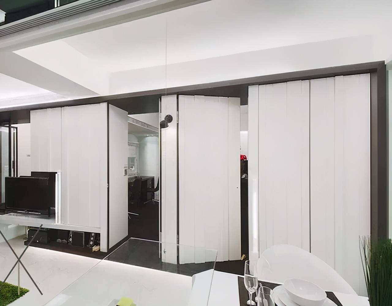 隐形门不但可以划分居室空间,而且尽可能地保留了空间的开阔感,因而通常用在小户型设计中。