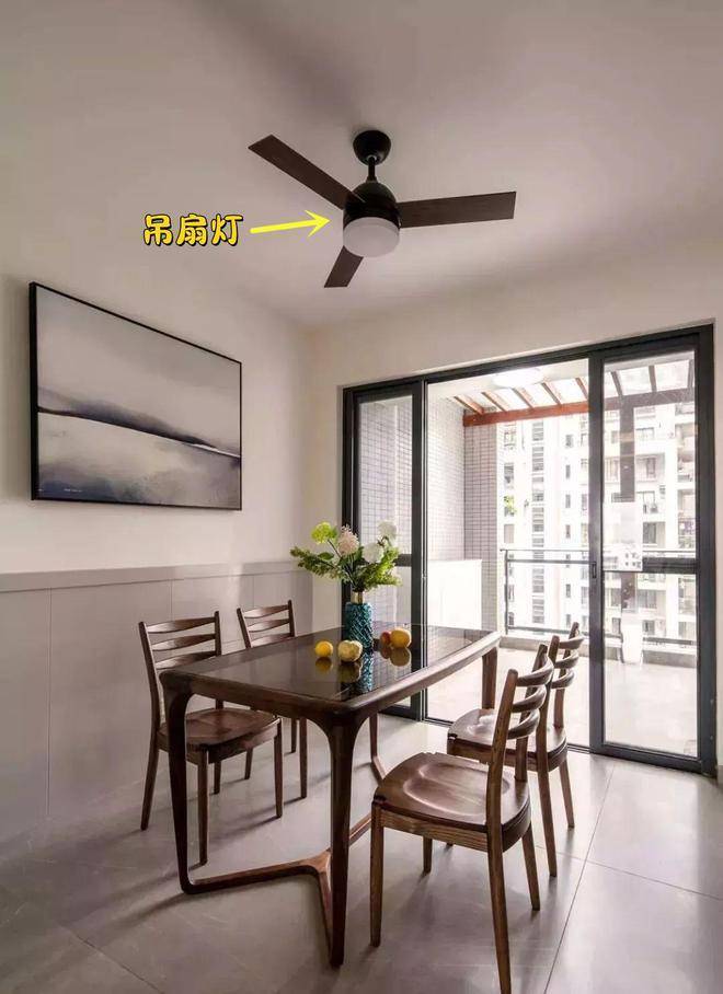 第一眼看到吊扇灯的时候,感觉颜值不高,会觉得它拉低了家里的装修档次。所以在我强烈地反对下只在餐厅里装了一个,没想到用起来还真挺舒服的,尤其是人多的时候吃饭,感觉大家都能吹到风,现在都后悔家里没多装几个了!