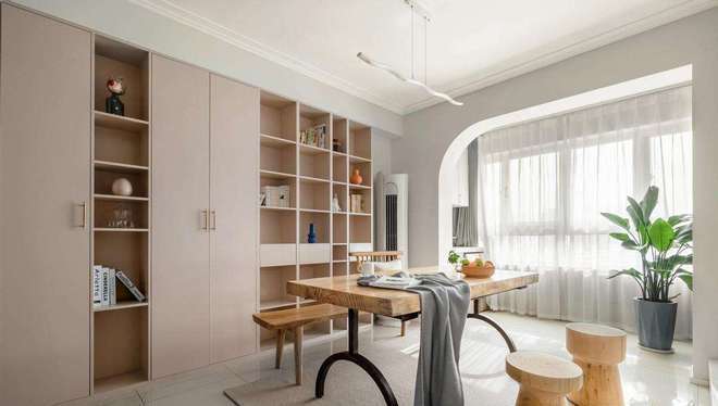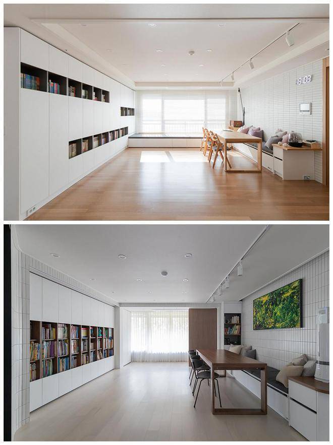 随着“去客厅化”的流行,很多人客厅装修直接将沙发都省了,改成了书桌或者卡座,这样装的确利用率更高,视觉显大,还能增加收纳空间。