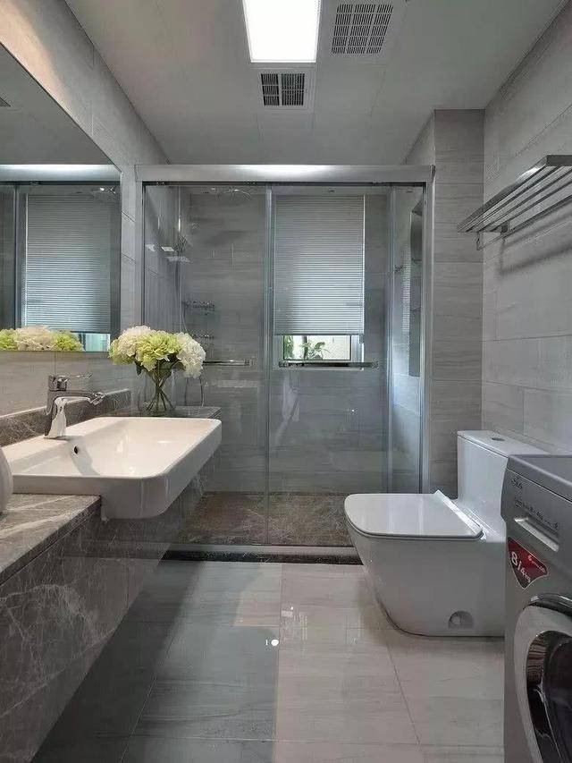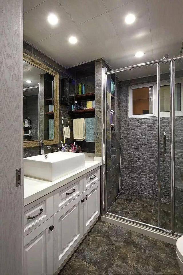 利用卫生间一角,做个方形隔断淋浴房,冲洗沐浴的时候也就淋浴房会湿,其他空间就能保持干燥。