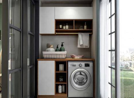 阳台改造洗衣房的好处非常多,最明显的特点就是阳台空间得到了合理利用。洗衣机摆放在阳台上,打造成洗衣房,平时洗完衣服就能马上拿起来晾晒了,非常方便。大部分的洗衣房都是配置洗手台和收纳柜,平时早上起床就不用排队洗漱了,提高了生活效率。而且阳台上有了收纳柜,就可以摆放各种家居物品了,让阳台空间显得干净整洁,装饰效果也非常好。