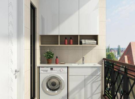 在装修新房阳台时,相信大部分人都是用阳台来晾晒衣服的,因为阳台是通风透气,又能直接照射到阳光的地方,在客厅阳台晾衣服是无可厚非的,也是效果最好的。不过,很多人家里阳台都只是晾晒衣服这一个单一的功能,偶尔会摆放一些杂物。这种阳台设计对我们小户型来说,着实是一种浪费。所以,为了能够让小户型的空间都得到充分的利用,很多人都会将客厅阳台改造成功能区,其中阳台改造洗衣房是大部分家庭都会选择的装修方式。