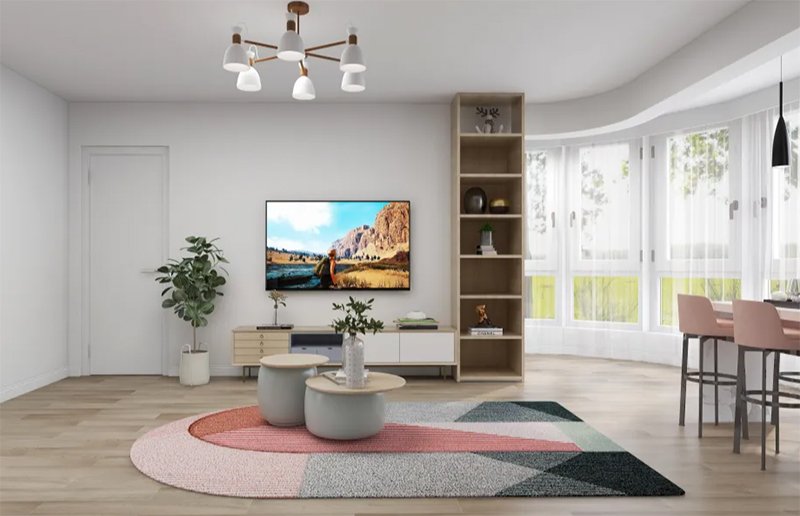 预算充足,也可设计成旋转式背景墙,电视角度随意旋转,生活享受更舒适。
