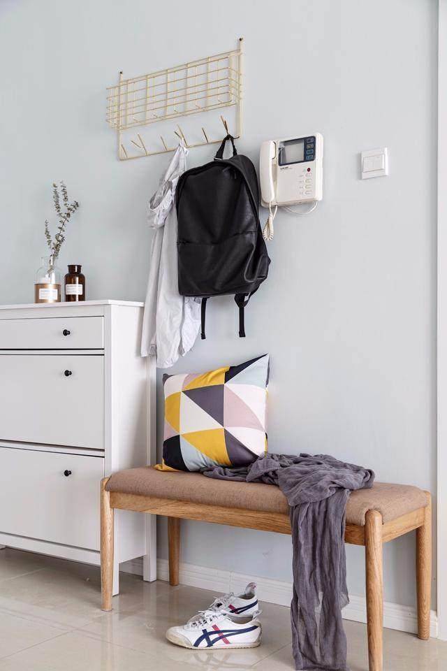 一般有经验的装修师傅,不仅会帮我们装好鞋柜,还会根据需求安装一个换鞋台。这样不仅能保证鞋柜安排更时尚大方,还方便我们换鞋。如果我们的玄关地方够大,不妨安装一个换鞋台。这样的设计既实用,又有设计感。当然了,如果家里是小户型的房子,还是不建议这么做的,因为小户型本身空间就小,如果在安装换鞋台,整个空间会显得很拥挤。所以我们不妨试试其他的方法。