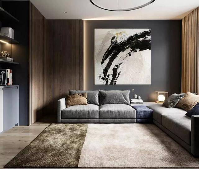 采用不同规格的装饰画来丰富空间表情,也可以流露出满满的艺术情趣。选择尺寸较大的大幅画作来提升客厅的艺术感,不但能打破整体空间的单调氛围,而且能凸显主人的品味和格调,给视觉带来一丝惊艳的感觉。