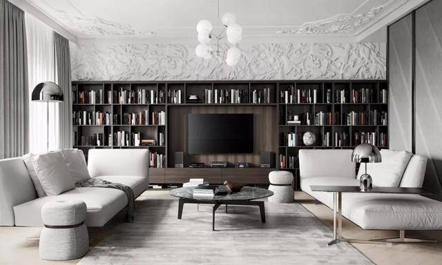 会客聊天是客厅的本职功能,如果家里不常来客人,那么将电视墙改成一整面墙的书柜,在上面放置一些心爱的书籍,会特别适合喜爱读书的家庭。