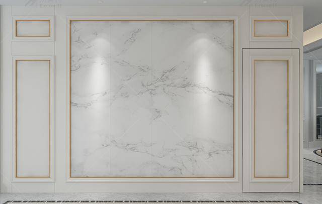 背景墙线条边框目前最常见的有这4种:金属边框、大理石边框、实木、PVC边框等,这几种是家装中比较深受业主青睐的线条,,比全贴大理石好看太多,造型独特,简洁大方。