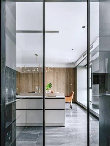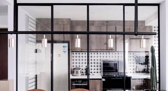厨房对于很多中国家庭来说,都是下厨者,尤其是女主人的小战场,传统的厨房与其他空间完全分隔,是个独立空间,阻隔了空间延伸,让厨房和餐厅都显得很拥挤,而且整个屋里的采光也会受到严重影响。这时大家可能会想到做个开放性的厨房,但是做饭过程中煎炒烹炸的油烟难免让坐在客厅中的其他人很不舒服。那么如何保持厨房和客餐厅连通的同时避免油烟呢?做个玻璃隔断是个不错的办法。
