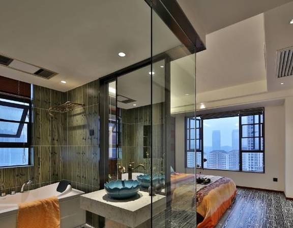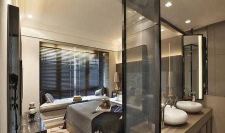 对于卧室比较大的家庭,装修时会选择做玻璃隔断,可以一室多用,尤其是一些带有卫生间和衣帽间的主卧。