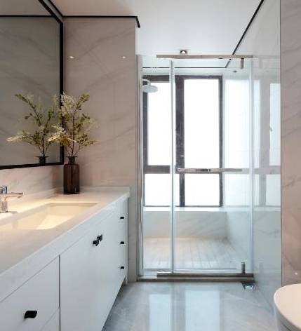 现在大多数人家里卫生间也都有干湿分离,使用玻璃隔断则最好不过了。通透的玻璃隔断可以很好地配合瓷砖的质感。