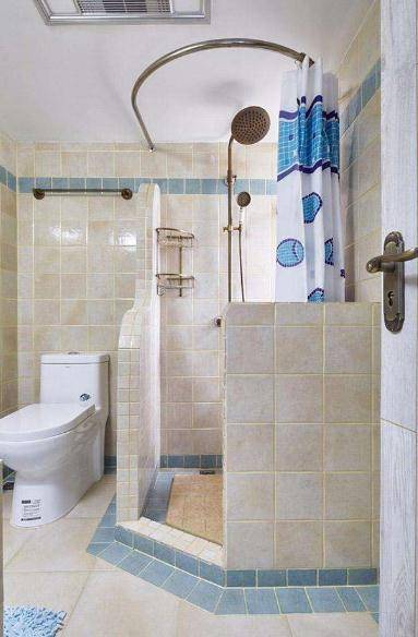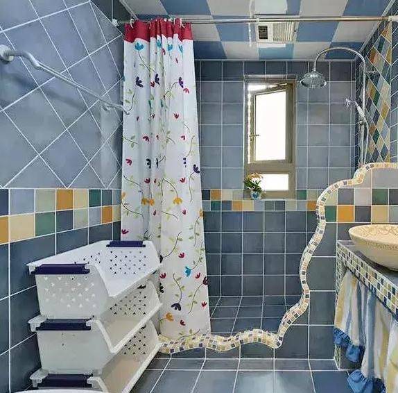 朋友家的卫生间空间面积虽然小,但是一眼看去却能给人宽敞明亮的视觉效果。浅蓝色的瓷砖装饰更加让人倍感清新自然,赏心悦目。而她处理干湿分离的操作竟然是打造小矮墙,利用矮墙隔断来进行分区,同时起到阻挡积水外流的作用,搭配好看的浴帘装饰,以此来达到干湿分离的效果,这波操作实在是太聪明了。