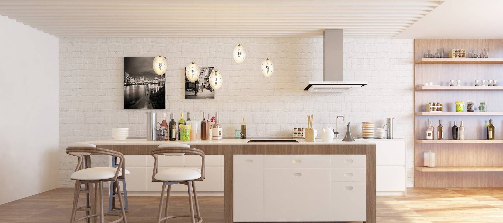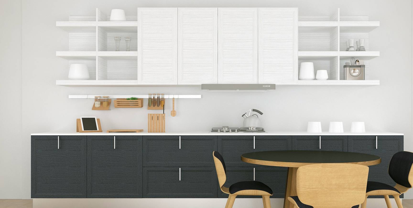 厨房比较常见的设计是吊柜,吊柜整整齐齐的排列,可以把所有凌乱都收纳。但是对于小户型而言,本来就很拥挤的厨房再被吊柜占据大部分空间,做饭的时候走动起来都受桎梏。