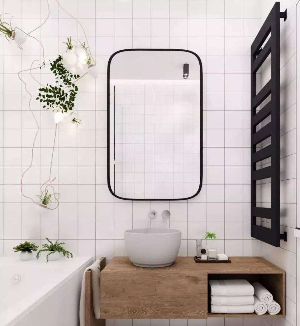 台下盆也有一定的缺点,就是与台面衔接处,一般是用胶粘的,时间久了容易产生霉变,台上盆,其实也有这个问题,这个没办法改变。再者台下盆,与台面、浴室柜或者墙壁等搭配好了,一样可以装出惊艳的洗漱台来,这款就很有格调、气质了。