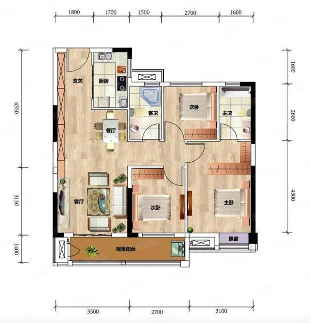 大家知道,户型的设计,以横向展开为好。面宽大,进深小,户内采光通风都优,这也是为什么很多朋友推崇两梯两户的板楼。可是你看房多了就会发现,市场上有些户型,功能是窝在一起的,,比如今天我在网上看到的这个户型。