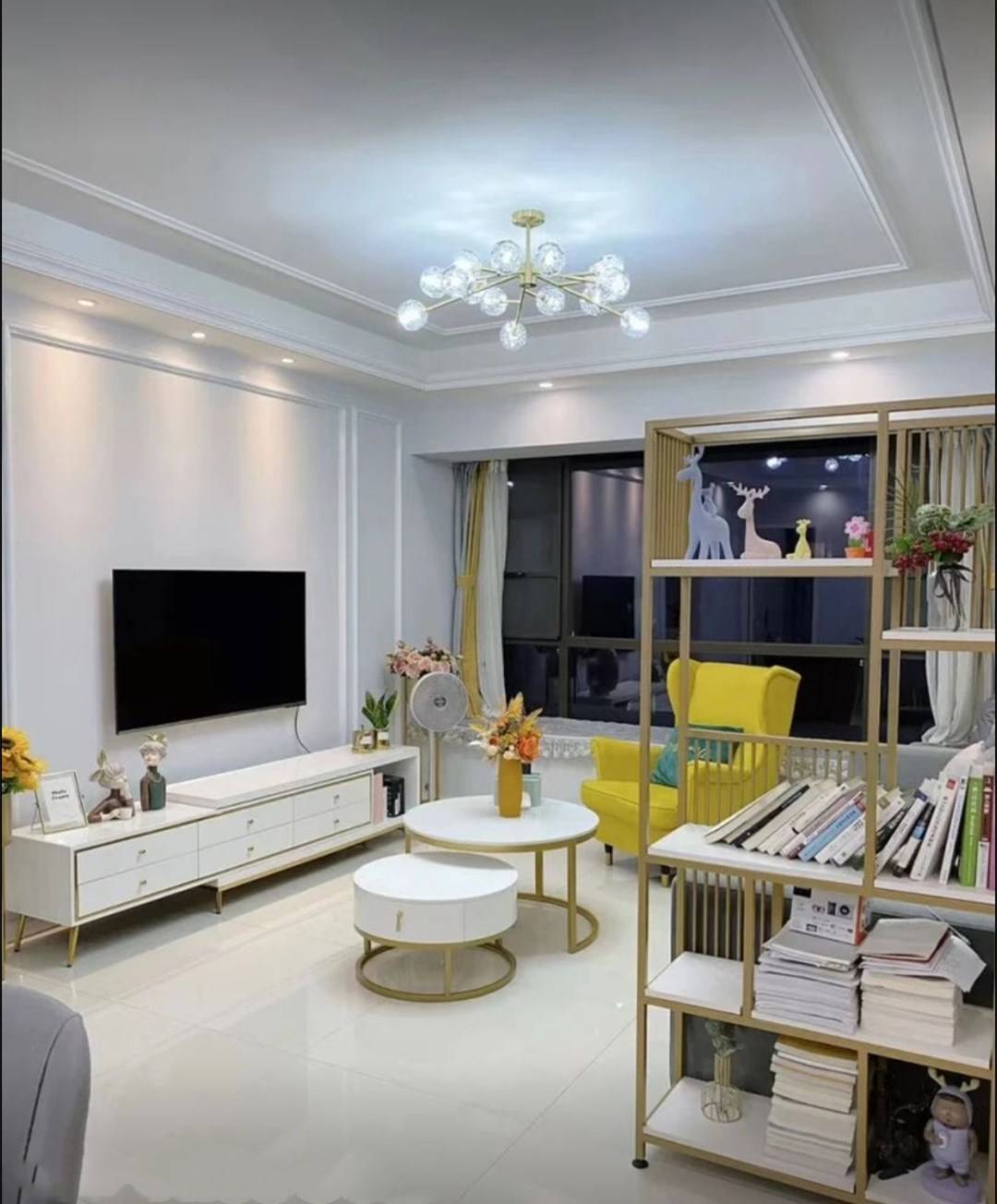 我家客厅沙发旁边也做了一个收纳架,一开始打算放一些装饰摆件的,但后来就主要摆放家里的图书了!电视柜和茶几虽然是买的成品柜,但都选择有收纳功能的款式。这样一来家里每一个区域都有收纳空间,自然就不会太过凌乱。
