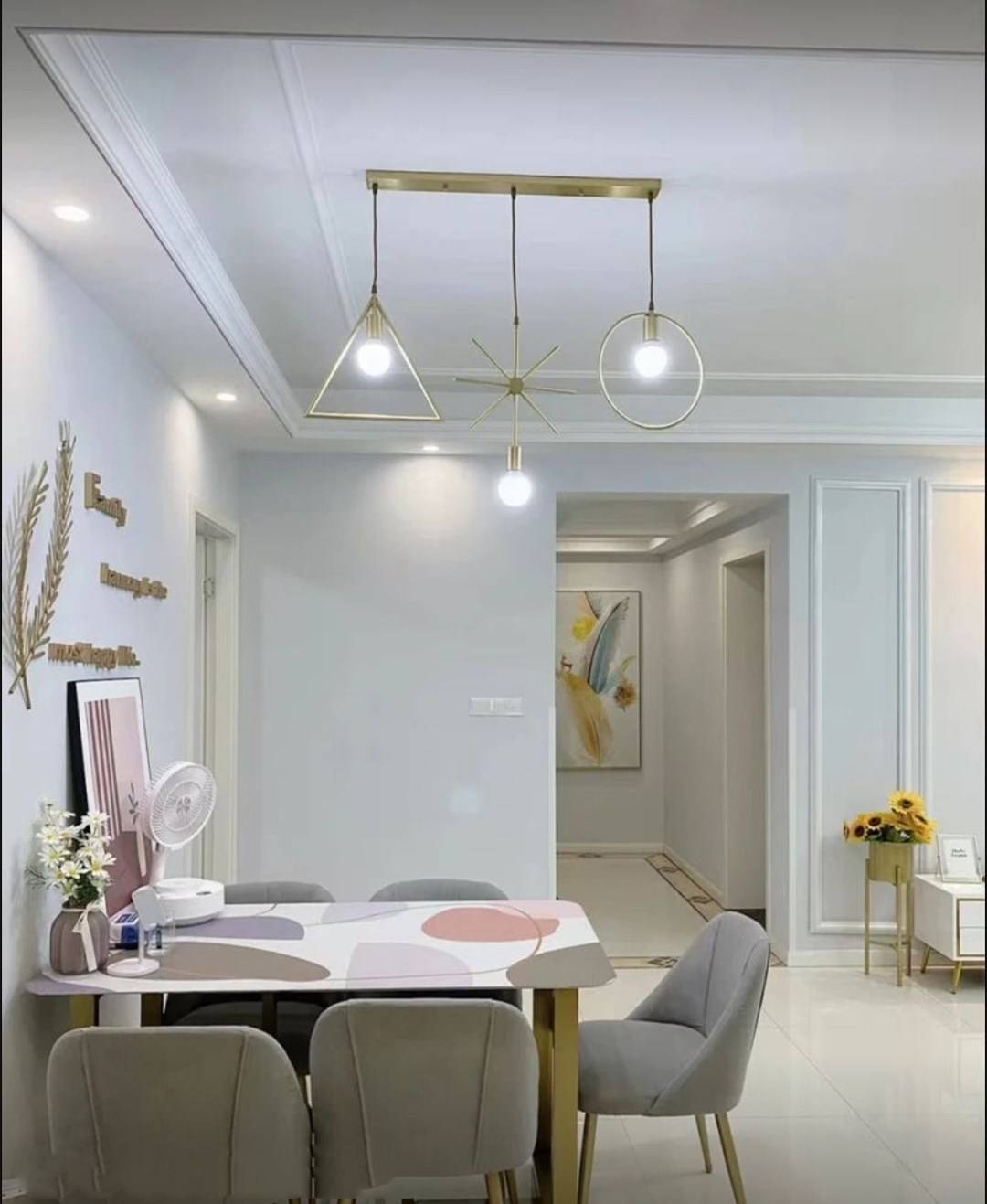 因为进门的左手边是一堵墙,空间虽然宽敞,但是紧挨着厨房门,不能当餐厅,所以当初设计师劝我打餐边柜的时候,我就觉得和餐厅之间隔着一道门,装个柜子光秃秃的,总觉得怪怪的。但是设计师说不打柜子以后绝对后悔,别看这里面积小,但是收纳力可以点都不小,况且家里餐厅没有餐边柜,就会显得光秃秃的,虽然隔着厨房门,但层次也没有断!