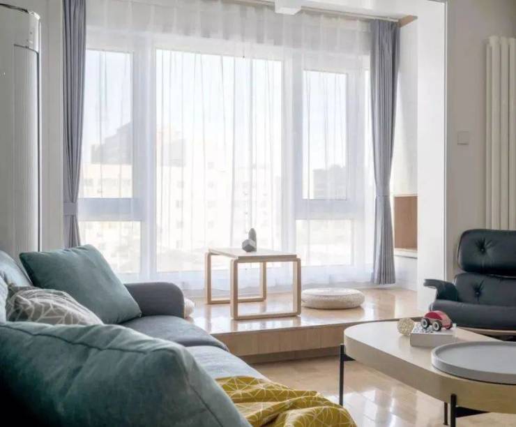 阳台地面与客厅打通:如果你的客厅(卧室)是直接铺地板,那么阳台这里可以直接通铺过去。如此,阳台和客厅的合二为一就更加完美,更具整体感。