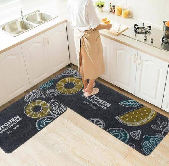 我家厨房曾经也铺过地垫,特别容易脏,至少每周要清洗一次,后来觉得太麻烦就把它撤掉,不仅省事,厨房看起来更加干净清爽了。如果厨房地面有水或有油,及时用拖把或抹布擦干净,比地垫省事。