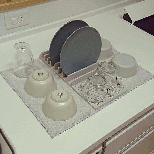 现在每次洗好碗,放在一块吸水垫上,然后用布擦干净,放进橱柜里面,减少一些清灰和除水垢的烦恼。跟沥水架相比,吸水垫可以折叠起来放进橱柜里,不占用台面空间,清洗也很方便,手洗机洗都可以。