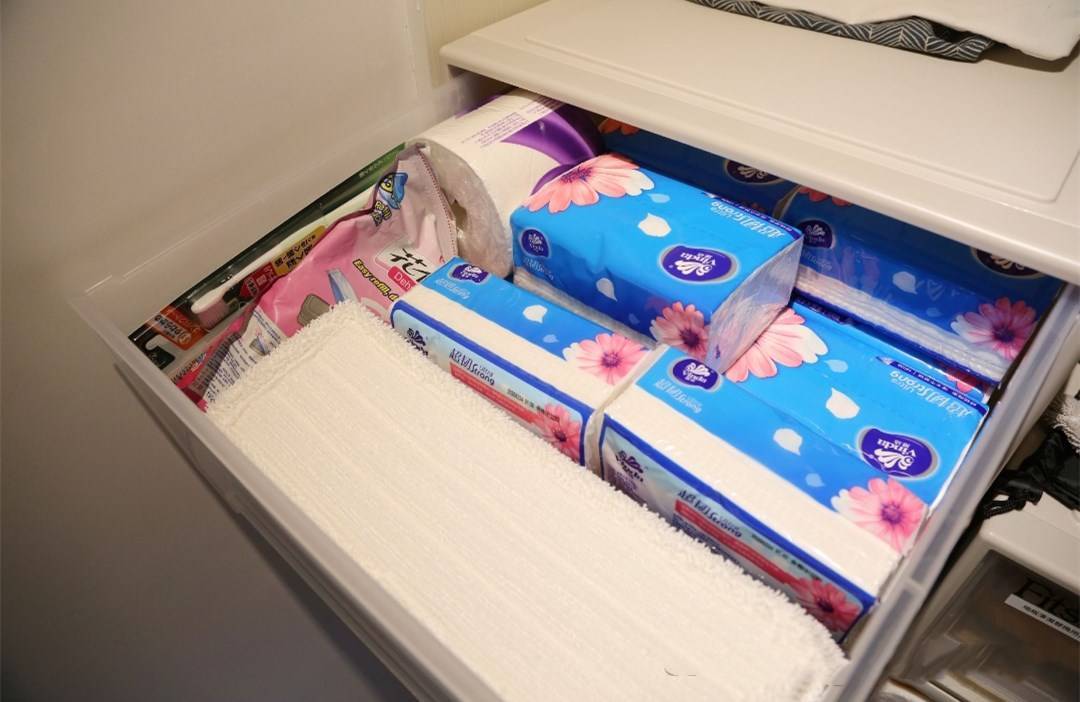 抽屉里的收纳是借鉴了日式的收纳方式进行的,别说还真的蛮好用的。平时抽屉里的物品都是堆放在一起,打开 抽屉后就变得非常凌乱,但是用上各种隔断的小工具后,物品分类明确不说,抽屉里再也不乱了!---如果你也喜欢这样的设计,可以联系设计师qijiavv