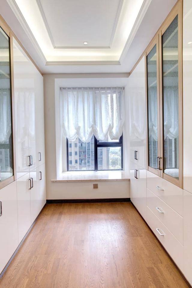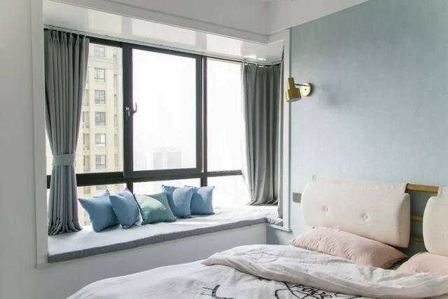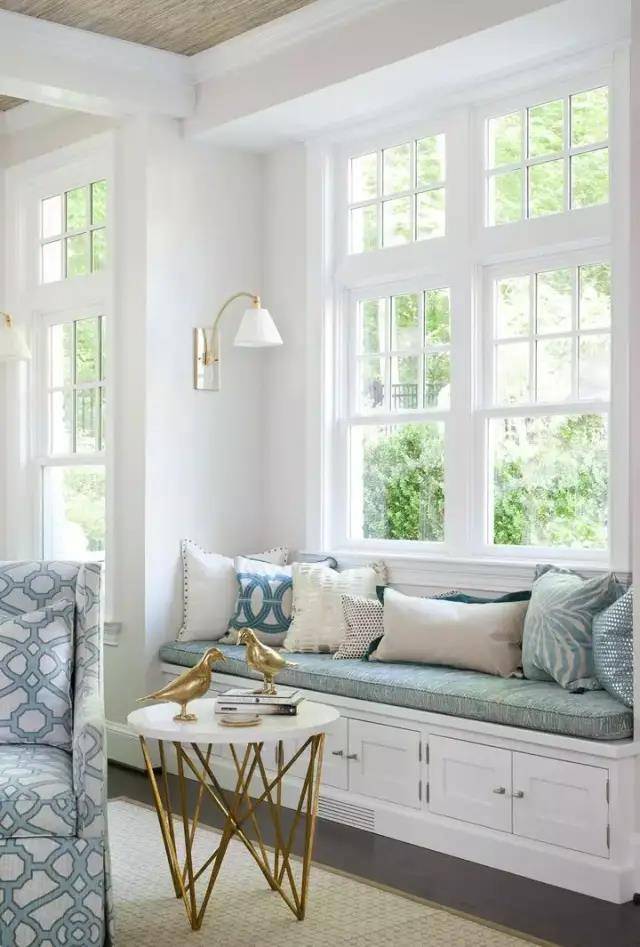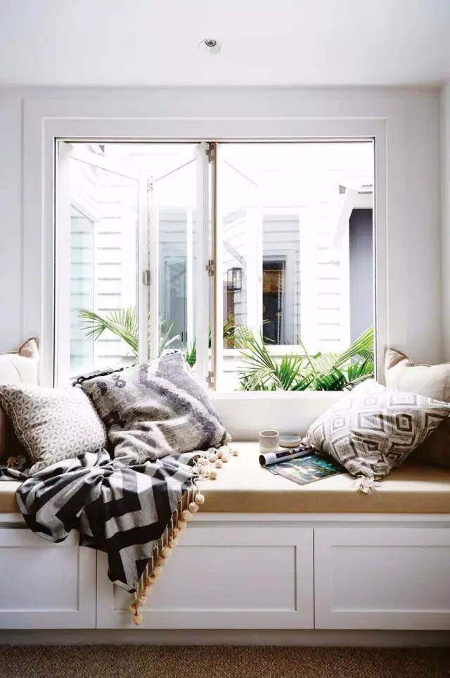 如果不喜欢太复杂的装饰,可以把飘窗设计成很常规式的。可以在飘窗上放一些靠垫等等,偶尔可以在这里休息、看书、放松,是很不错的选择。