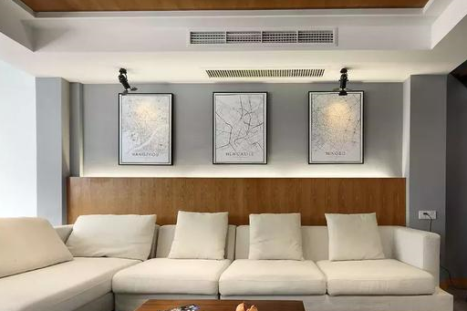 沙发墙上的装饰画其实是杭州、纽卡斯尔、宁波三座城市的黑白地图,这三个地方对业主来说意义颇为重大。