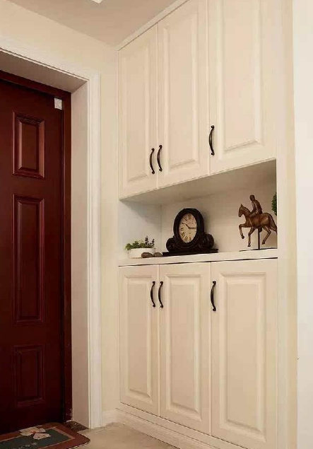 玄关鞋柜上,信不用过于多说了吧,大家一般都会选择在家里面装一个鞋柜,那么鞋柜安装的最合适位置肯定就是玄关的位置了,我们进门的时候,你要是需要更换写字的,那么将鞋子,放在鞋柜里面是非常正常的事情,所以说,大家将鞋柜安装在玄关的地方是最合适的,那么在这里,我们要给大家提醒一下,其实我们在安装鞋柜的时候,完全可以选择悬空安装,这样的话,那鞋柜的下方还有一排可以利用的空间,这部分空间那么完全就可以用来放一些平常我们最常穿的鞋子,这样的话来回取放的时候也是非常方便的。