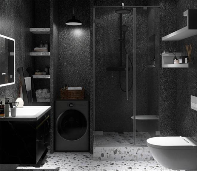 黑色哑光卫浴最大的特征是颜值高,轻而易举营造出高级感。只是在实用性大大降低。尤其水渍,很容易在表面留下污痕,白花花一片,要多美好有多美好!