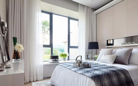 卧室里的整体装修也都是以清淡一点的颜色为主,这样会让人看着就感觉是非常的舒适,而且衣柜还是公公在外进行一个定制,不管是质量还是造型的设计,都让人感觉是非常的舒适有质量的。
