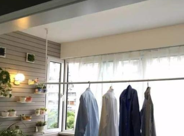 不过针对这个问题,朋友却笑称是我不懂。据朋友说,以横向的方式安装挂衣杆,不仅仅是他们家,很多别人家也是这样安装的。而这样安装的好处,不仅可以解决掉客厅光线差的问题,同时也有一点遮挡隐私的作用。说的简单一点,如果以常规的方式安装,那么在家里来客时,若阳台有衣服的话,不是很尴尬吗?