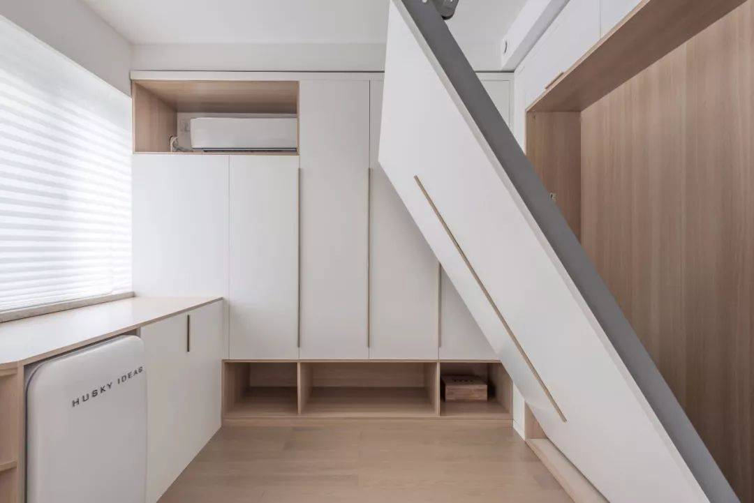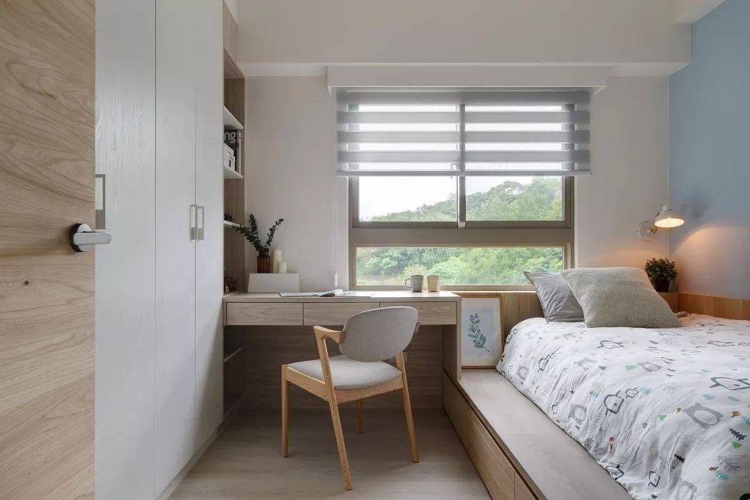 如果觉得直接落地的床觉得有点浪费空间,那么可以考虑底部+抽屉收纳,节省空间,增强收纳能力。
