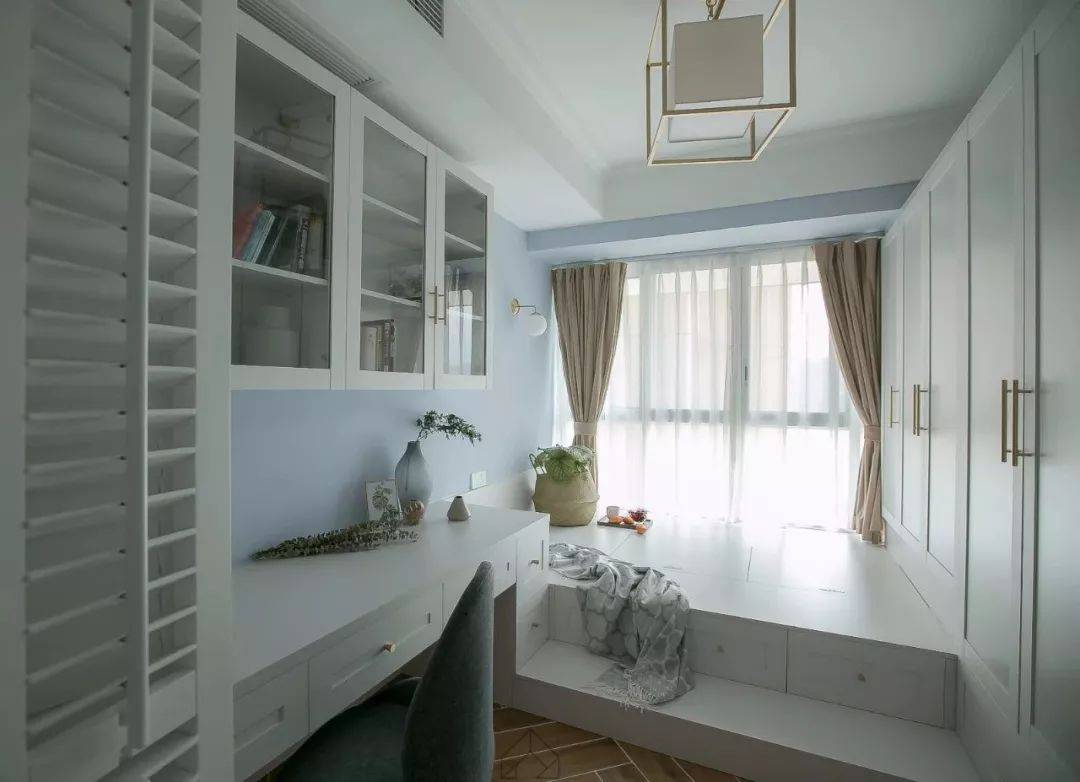 在榻榻米空间里,原本空间就比较小的话,如果条件允许就可以用护墙板来做靠背,这样既不会占用多少空间,又能带来一个相对舒适的靠背体验。