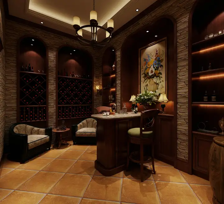 地下室的天然储藏功能和足够大的面积,在别墅装修设计时完全可以设计一个私家酒窖,地下酒窖是最接近于传统意义上的纯天然的恒温恒湿酒窖,因为它能达到天然地窖式的恒温、恒湿、通风等完美效果,所以越来越受到爱酒人士的青睐和选用。