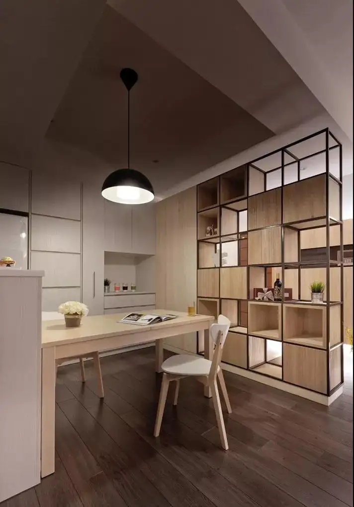 书房最常见的隔断是书柜或书桌或孩子的玩具柜,不仅划分出区域,还有效地增加收纳空间。如果你家里房间不够,没能拥有独立书房,隔断也能帮你隔出一个小书房来哦。